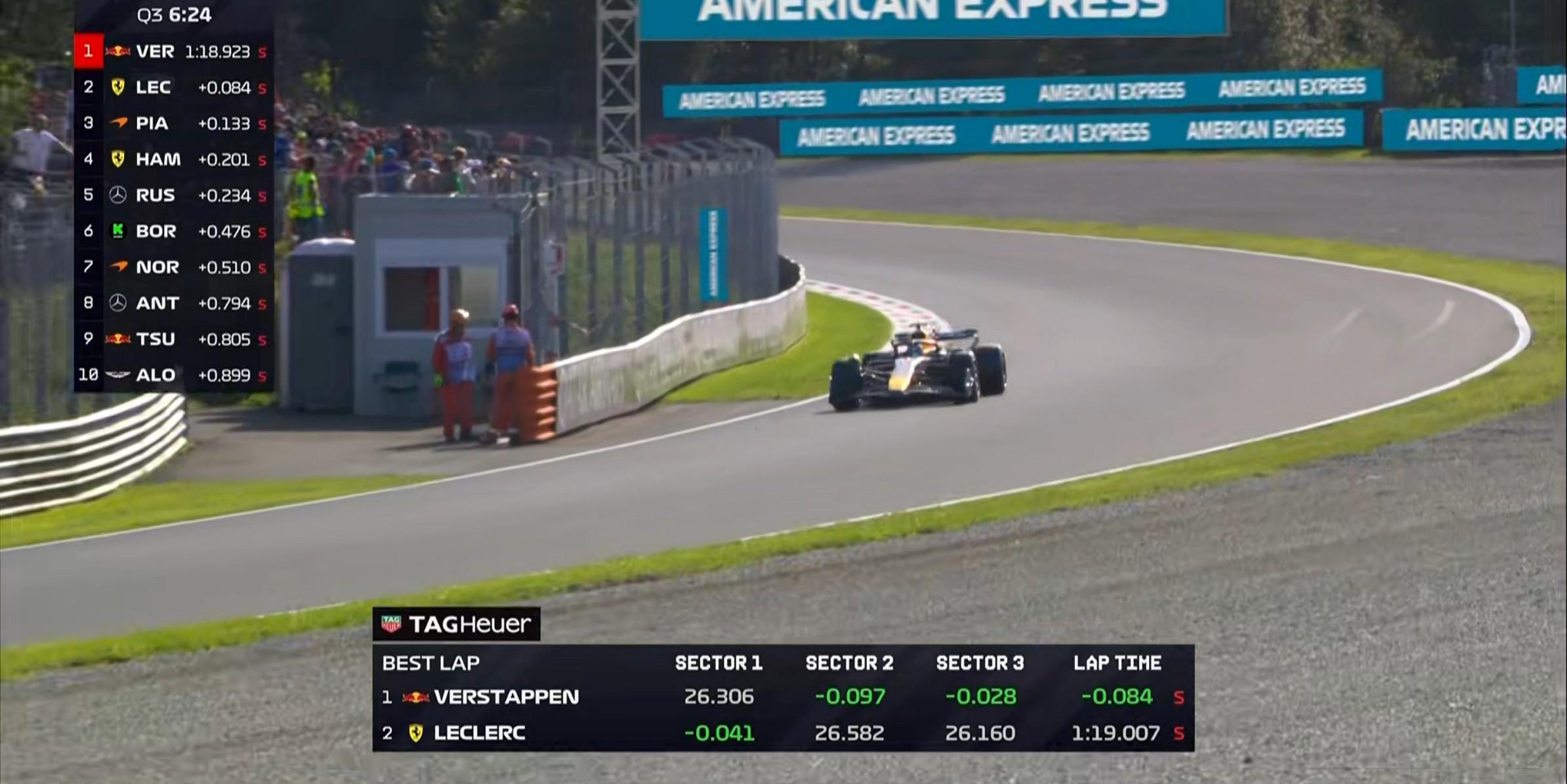 F1意大利排位赛:维斯塔潘破纪录夺杆,诺里斯P2,勒克莱尔P4